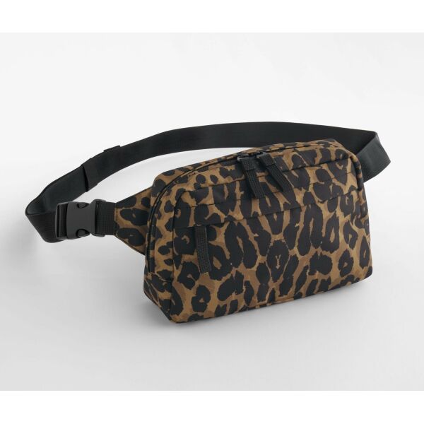 Rear zippered pocket. Zippered main compartment. Zippered front pocket. Fully adjustable waist strap. Contains 100% GRS certified recycled polyester, certified by Control Union CU811033. Leopard print design. Rear zippered pocket. Zippered main compartment. Zippered front pocket. Two-way zippered opening for easy access. Fully adjustable waist strap. TearAway label for ease of rebranding. Print area 13x8cm.